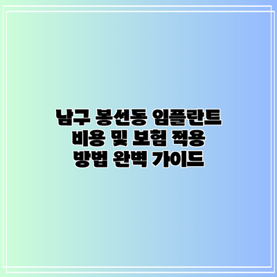 남구 봉선동 임플란트 비용 및 보험 적용 방법 완벽 가이드