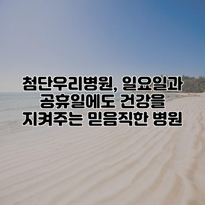 현대인들은 바쁜 일정으로 인해 평일에 병원을 방문하기 어려운 경우가 많습니다. 이런 상황에서 주말 및 공휴일 진료를 제공하는 병원의 필요성이 더욱 강조되고 있습니다. 첨단우리병원은 이러한 점을 인식하여, 환자들이 편리하게 의료 서비스를 이용할 수 있도록 노력하고 있습니다.