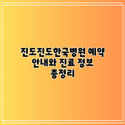 ✅ 진도진도한국병원 예약 방법과 중요 사항을 자세히 알아보세요.