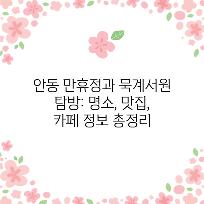 안동 만휴정과 묵계서원 탐방: 명소, 맛집, 카페 정보 총정리